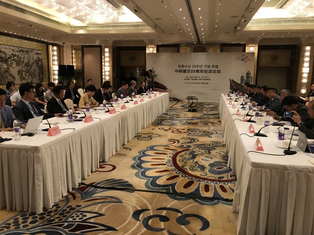 剛才樸銀夏大使在發(fā)言中提出,甚至是有些悲觀地說(shuō)今天是唯一一場(chǎng)中韓之間關(guān)于未來(lái)戰(zhàn)略方向發(fā)展的對(duì)話。但其實(shí)在我們討論的過(guò)程中,習(xí)近平主席和文在寅總統(tǒng)已經(jīng)互通賀電,互相慶祝中韓建交25周年。兩國(guó)最高領(lǐng)導(dǎo)人都表示要鞏固政治互信,妥善處理分歧,推動(dòng)兩國(guó)關(guān)系的健康穩(wěn)定發(fā)展。我想,這是我們大家共同的心聲、共同的愿望。今天我們所有在會(huì)上的各位,都愿意看到我們兩國(guó)的關(guān)系向著更為和平健康的方向發(fā)展。