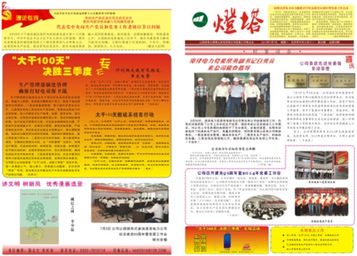2014年6月26日,國能中電塔山維護(hù)項(xiàng)目部參加山西漳電大唐塔山發(fā)電公司召開的“大干100天、決勝三季度”專項(xiàng)活動(dòng)動(dòng)員會(huì),并與業(yè)主簽訂了安全生產(chǎn)責(zé)任狀。項(xiàng)目部為此制定了各項(xiàng)組織、技術(shù)、安全措施。同時(shí),項(xiàng)目部專題稿件“大干100天,脫硫在行動(dòng)”榮登于塔山發(fā)電公司《塔山燈塔報(bào)》第23期一、二版。