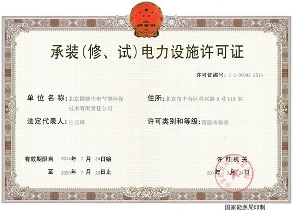 國能中電獲得電力設(shè)施承修資質(zhì)(四級)
