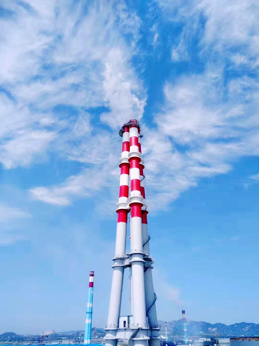 除利用多項國內(nèi)外先進技術、先進新材料外,電廠設立的三管自立式鋼煙囪,內(nèi)壁貼襯鈦板,有效降低了造價和電廠煙囪防腐的成本,是世界范圍內(nèi)第一根內(nèi)壁貼襯鈦板的鋼管式煙囪。對今后我國工業(yè)項目區(qū)建設、降低成本具有驗證性示范意義。