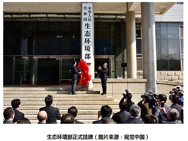 4月16日上午,新組建的生態(tài)環(huán)境部正式掛牌。李干杰任黨組書(shū)記、部長(zhǎng)。新部門生態(tài)環(huán)境監(jiān)管職能強(qiáng)化,監(jiān)管領(lǐng)域拓展,對(duì)建設(shè)美麗中國(guó)具有十分重要的意義。